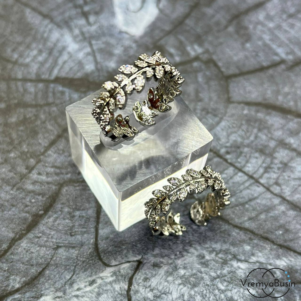 • Кольцо "веточка" из латуни с родиевым покрытием (1 шт.)