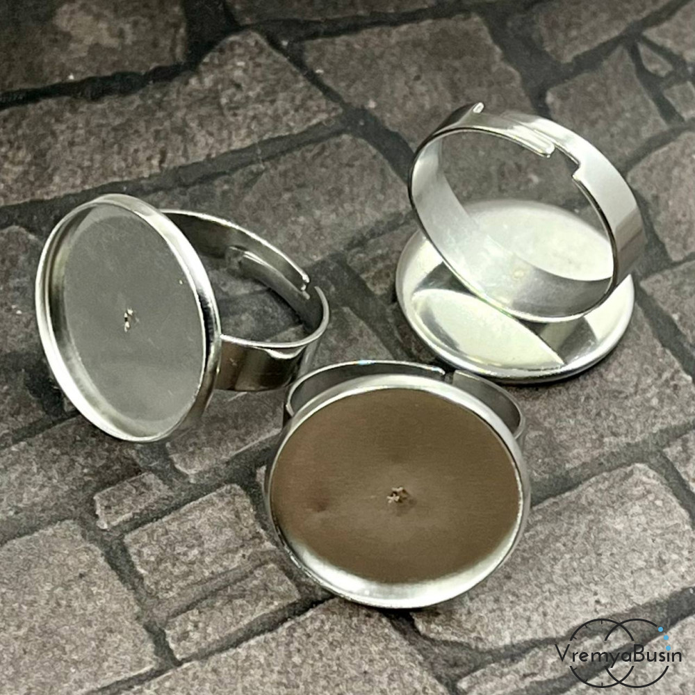 Основа для кольца с сеттингом для кабошона 18 мм, нержавеющая сталь (1 шт.)