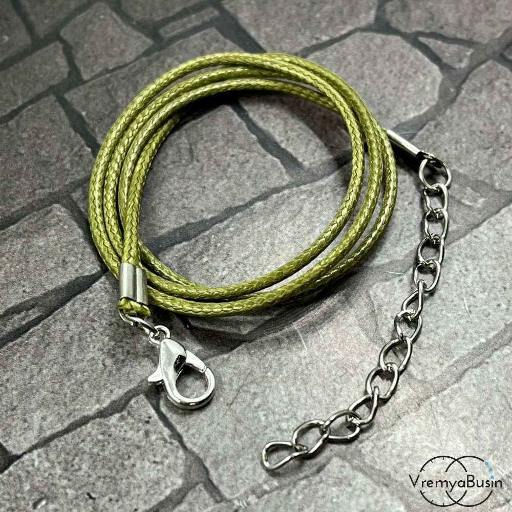 Шнур нейлоновый 1,5 мм с карабином, длина 45+5 см, цв. болотный (1 шт.)