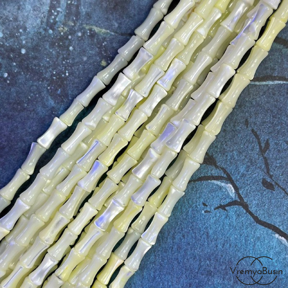 Бусина из перламутра, трубочка 4х8 мм, цв. лимонный (нить, ок. 45 шт.)