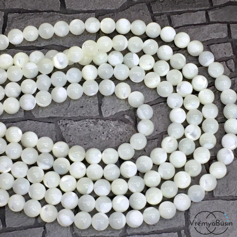 Перламутр натур., шарик гладкий белый, 6 мм (нить, ок. 65 шт.)