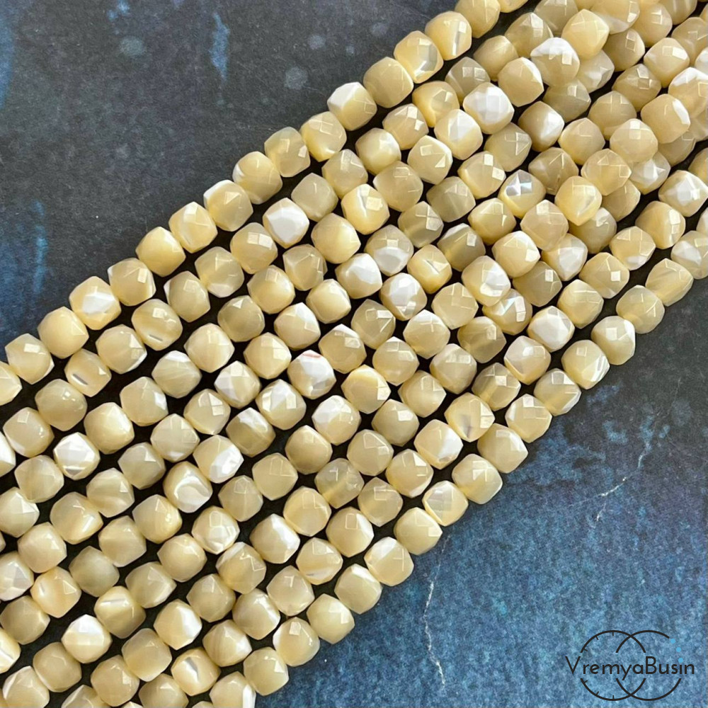 Перламутр натур., кубик граненый ок. 4.5 мм, цв. бежевый (1/2 нити, ок. 42 шт.)