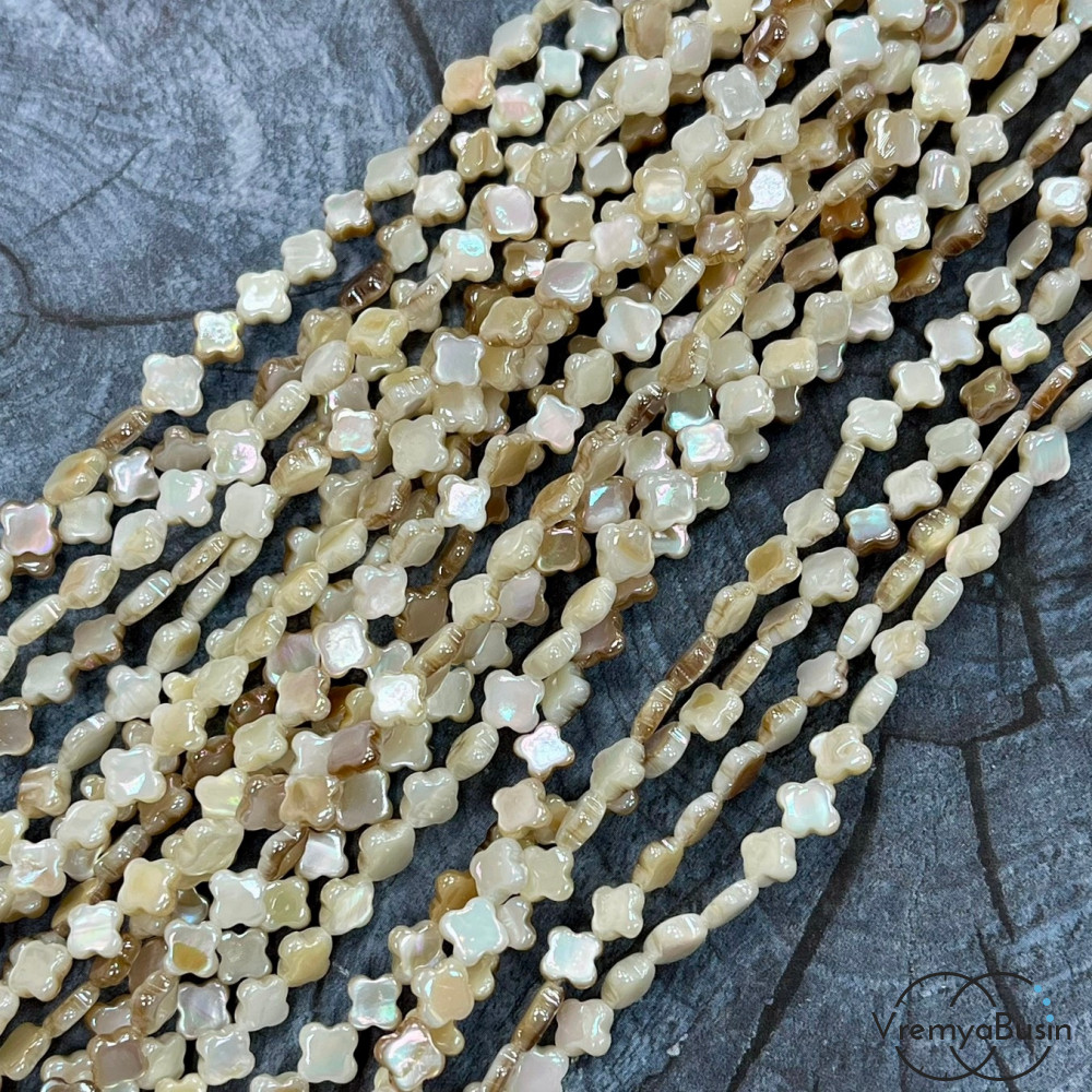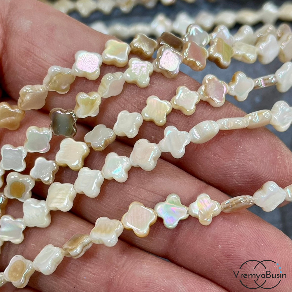 Перламутр с переливающимся покрытием, клевер плоский ок. 6х3 мм (нить, ок. 60 шт.)