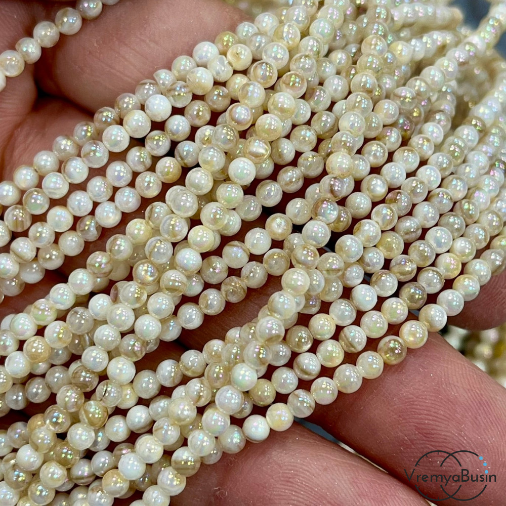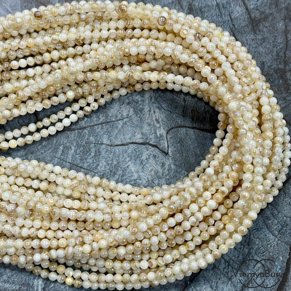 Перламутр с переливающимся покрытием, шарик гладкий ок. 4 мм (нить, ок. 90 шт.)