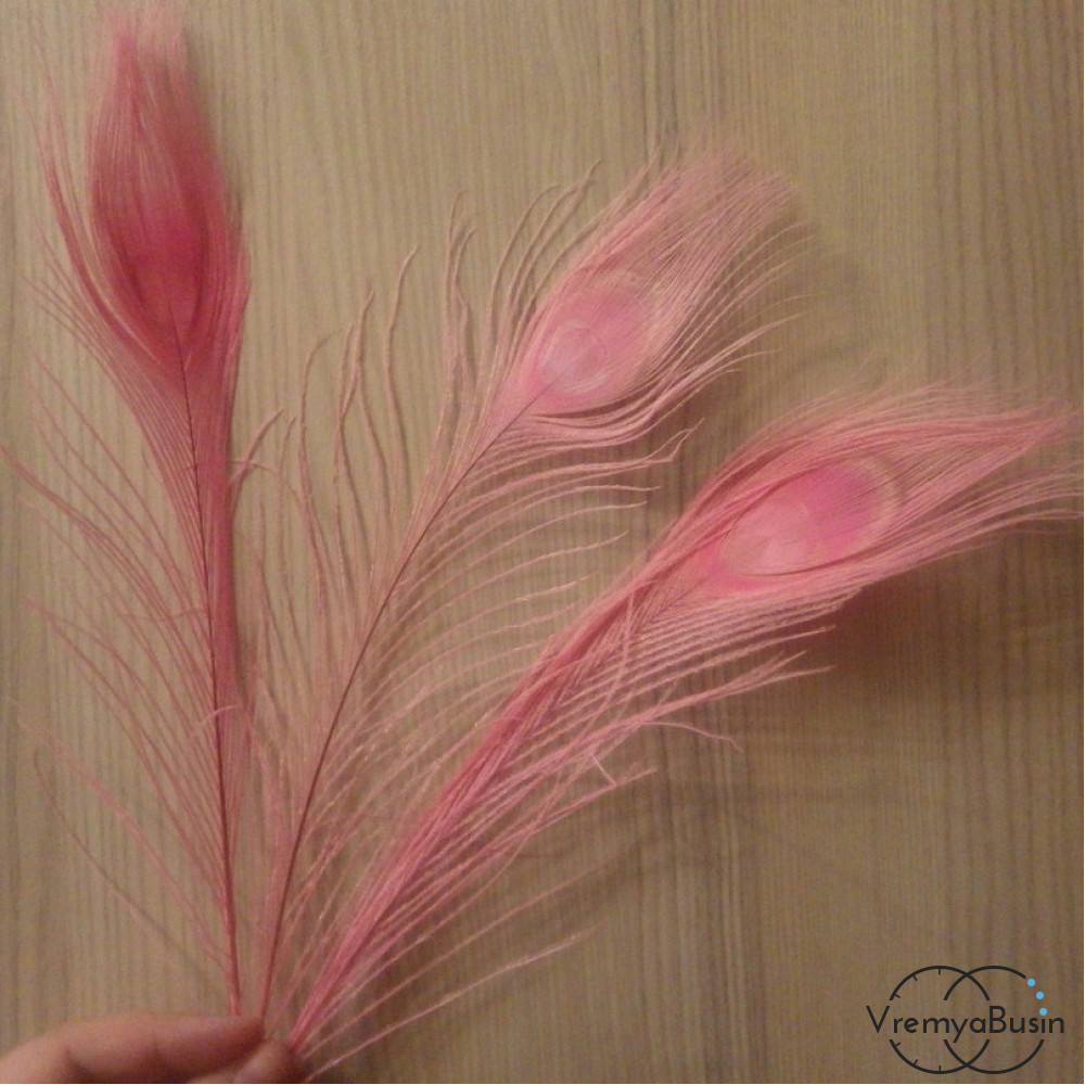 Перо павлина тонир., длина ок. 25 см, цв. розовый (1 шт.)