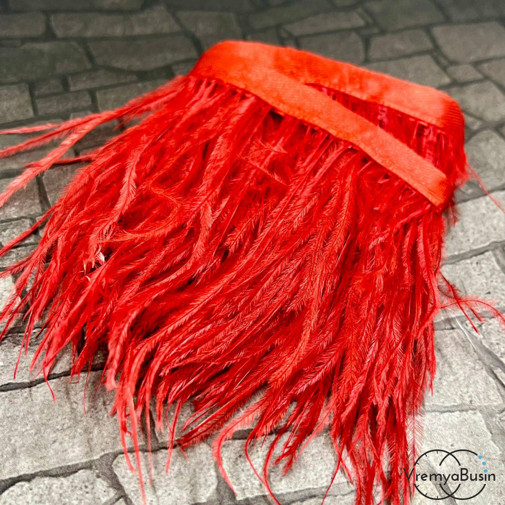 • Перья страуса на ленте, цв. КРАСНЫЙ (10 см.)