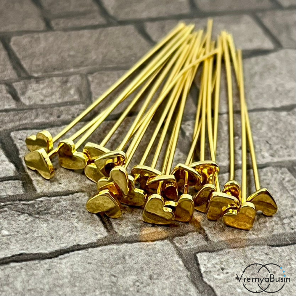 Пины с сердцем, 50х5х0.7 мм, латунь с позолотой (упак. 2 шт.)