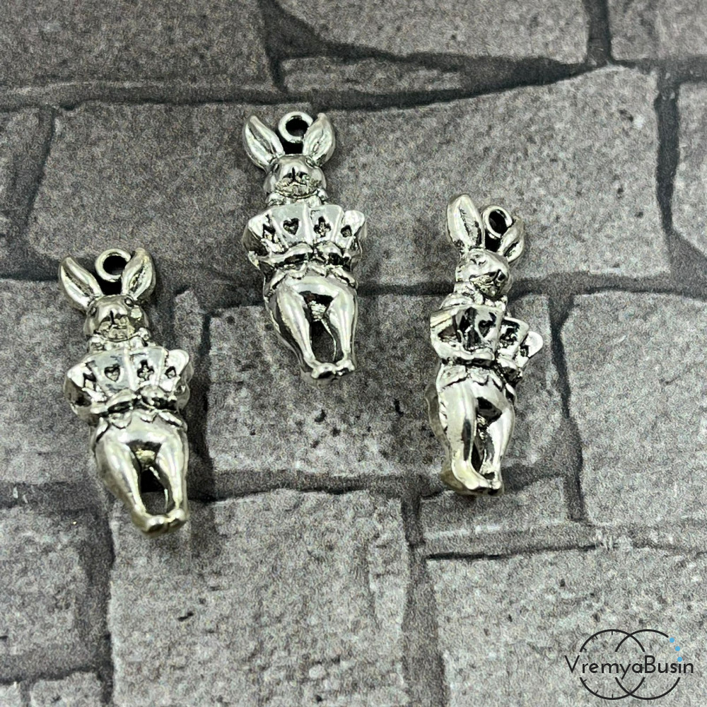 Заяц с картами. Подвеска металлическая, 9х23 мм, цв. серебро (1 шт.)