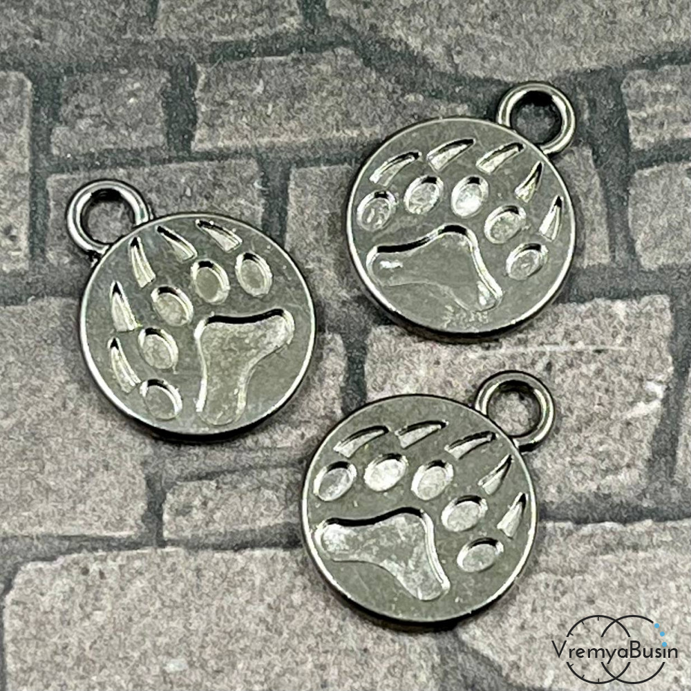 Медальон с медвежьим следом. Подвеска металлическая, 15 мм, цв. графит (1 шт.)