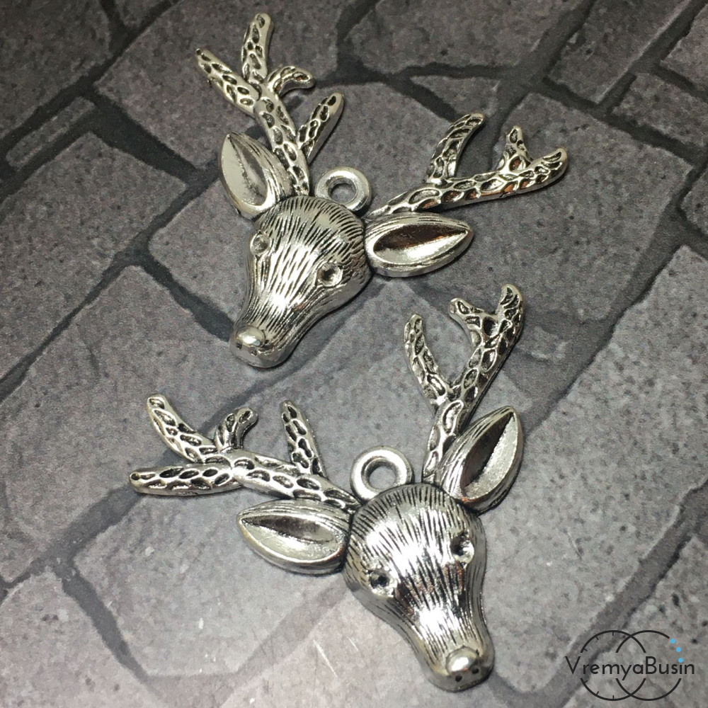 Олень, подвеска металлическая, 36х37 мм, цв. серебро (1 шт.)