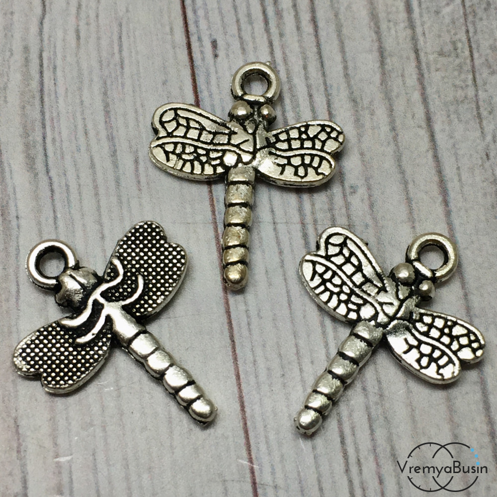 • Стрекоза. Подвеска металлическая, цв. серебро, 19х15мм (1 шт.)