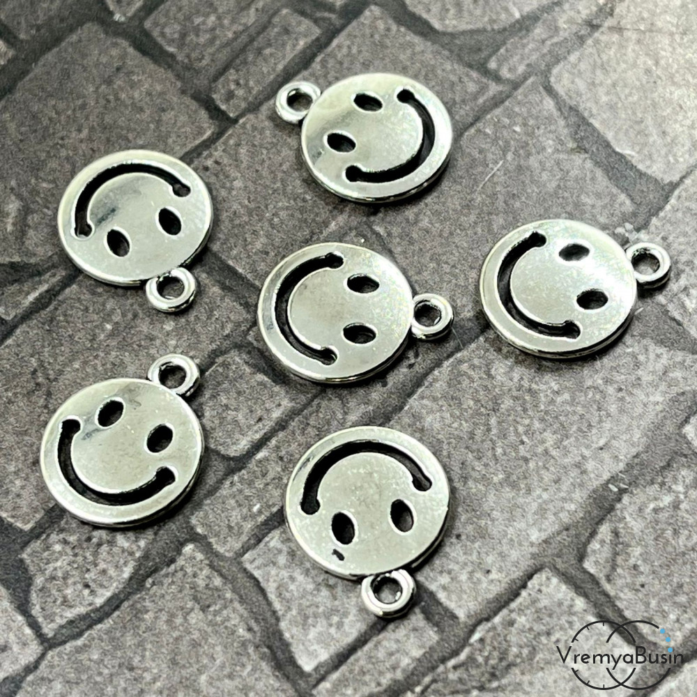 Смайлик. Подвеска металлическая, 12х15 мм, цв. серебро (1 шт.)