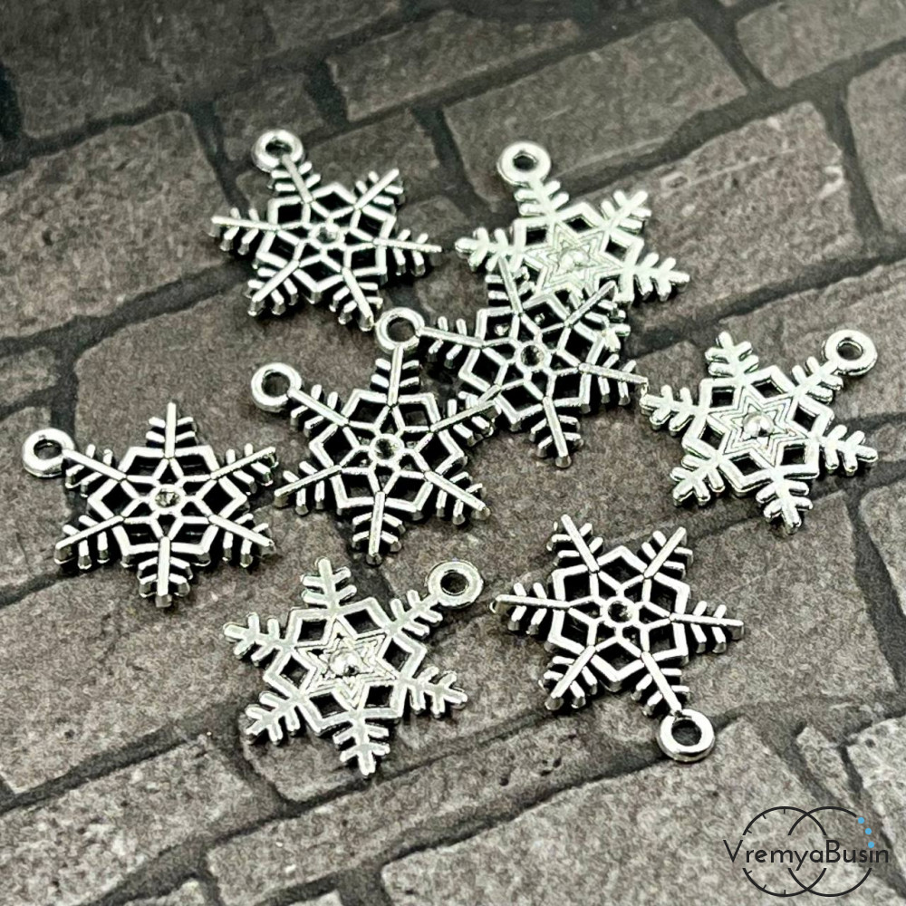 • Снежинка, подвеска металлическая, 13х18 мм, цв. серебро (упак. 5 шт.)