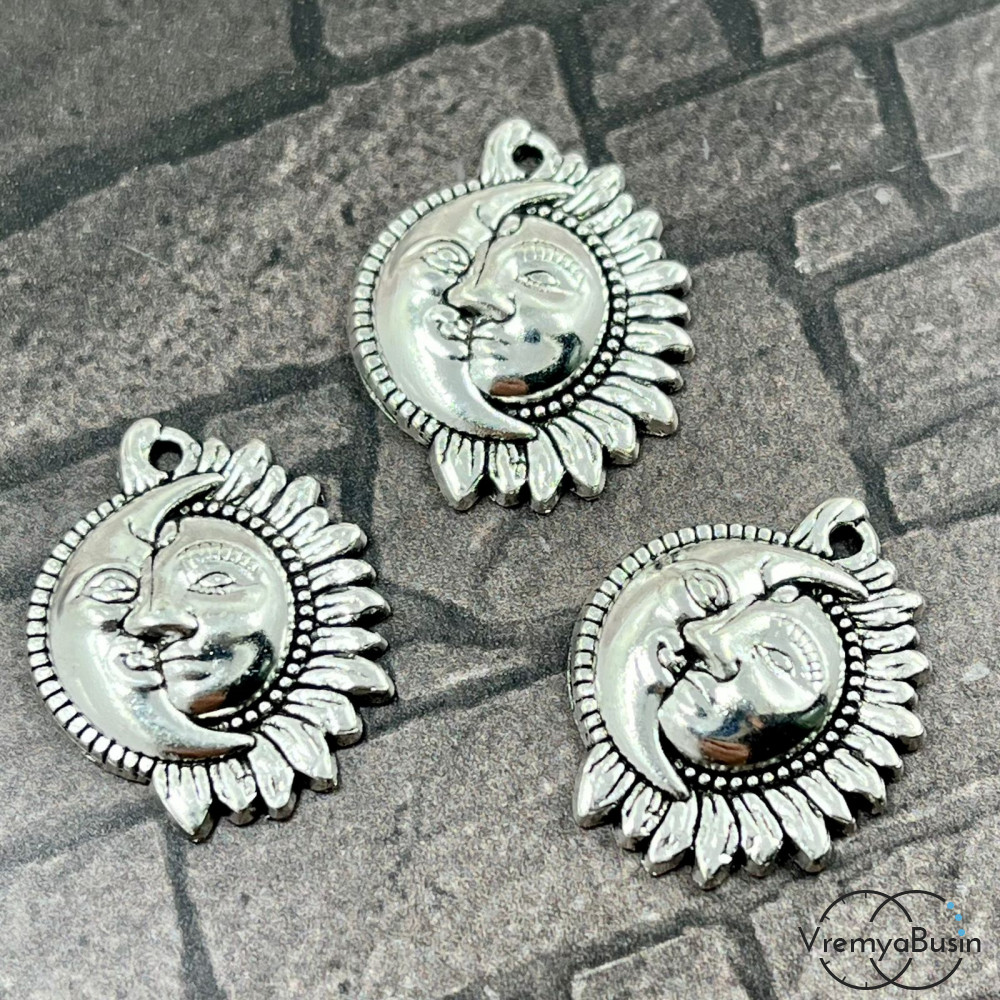Солнце и месяц. Подвеска металлическая, 16х20 мм, цв. серебро (1 шт.)