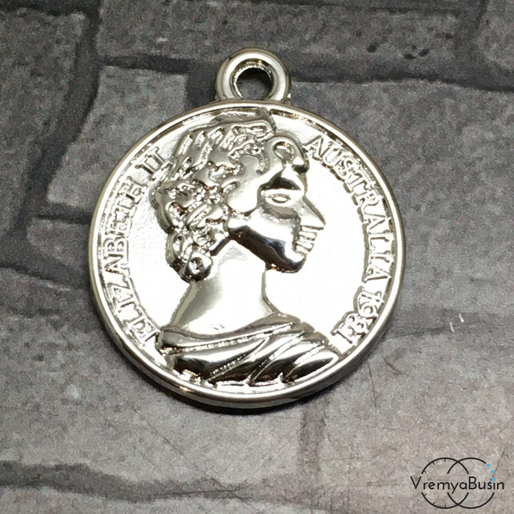 Подвеска "Монета" из латуни с родиевым покрытием, 20 мм (1 шт.)