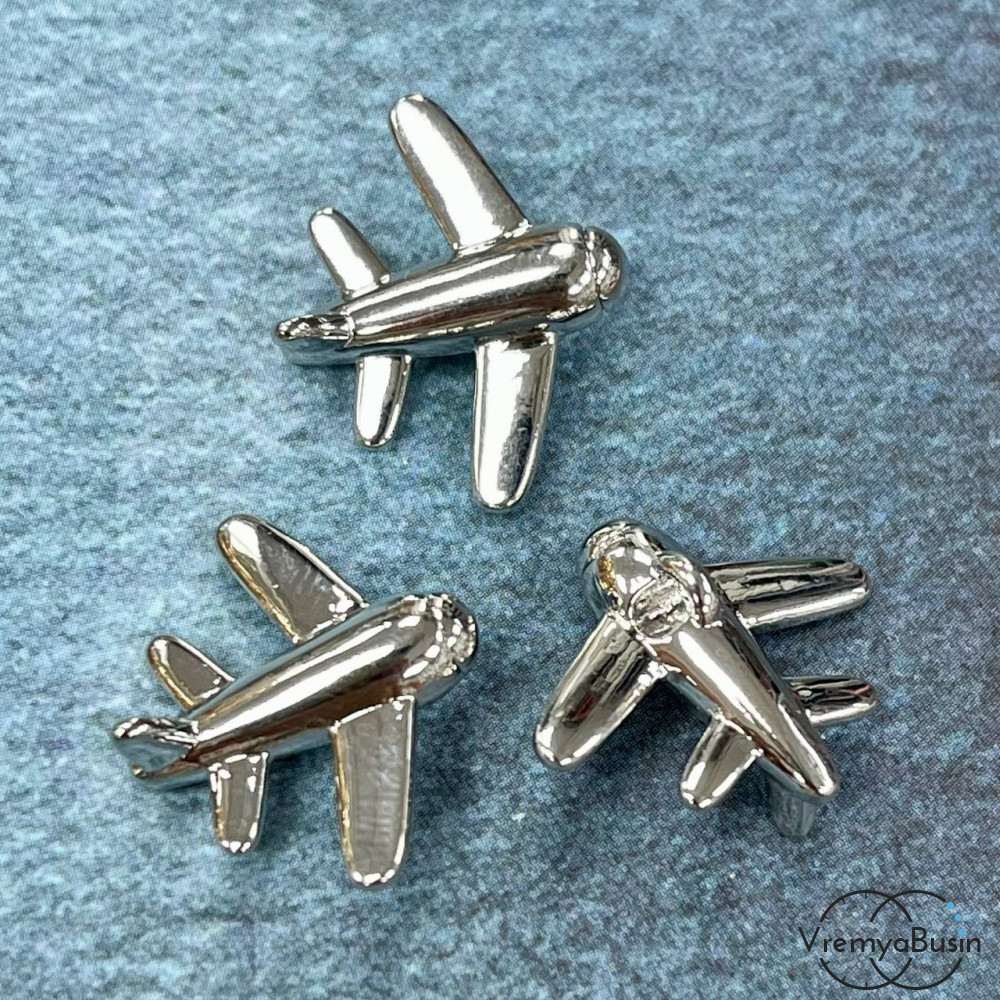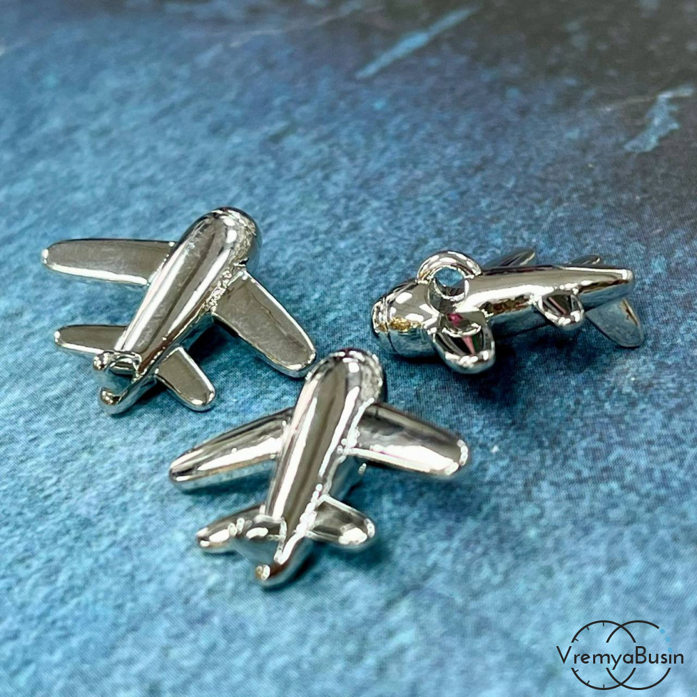 Подвеска "Самолет", 17х20 мм, из латуни с родиевым покрытием (1 шт.)