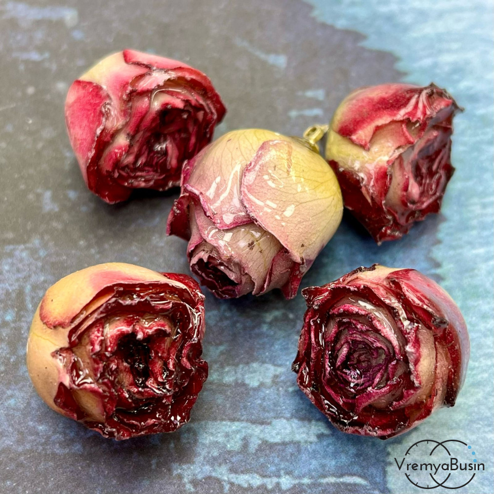 • Подвеска «Бутон розы», натур. засушенный цветок в эпоксидной смоле, ок. 25 мм (1 шт.)