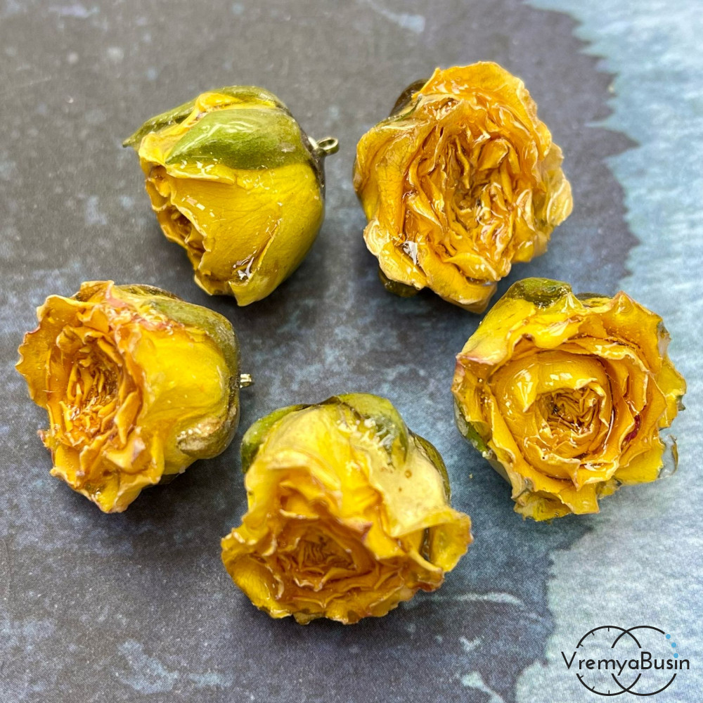 • Подвеска «Бутон розы», натур. засушенный цветок в эпоксидной смоле, ок. 25 мм (1 шт.)