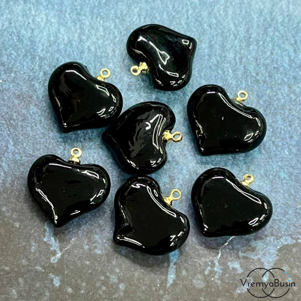 • Кулон из стекла "Сердце", 20 мм, цв. черный   (1 шт.)