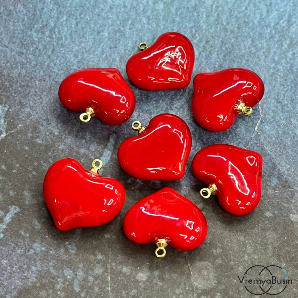 Кулон из стекла "Сердце", 20 мм, цв. красный (1 шт.)