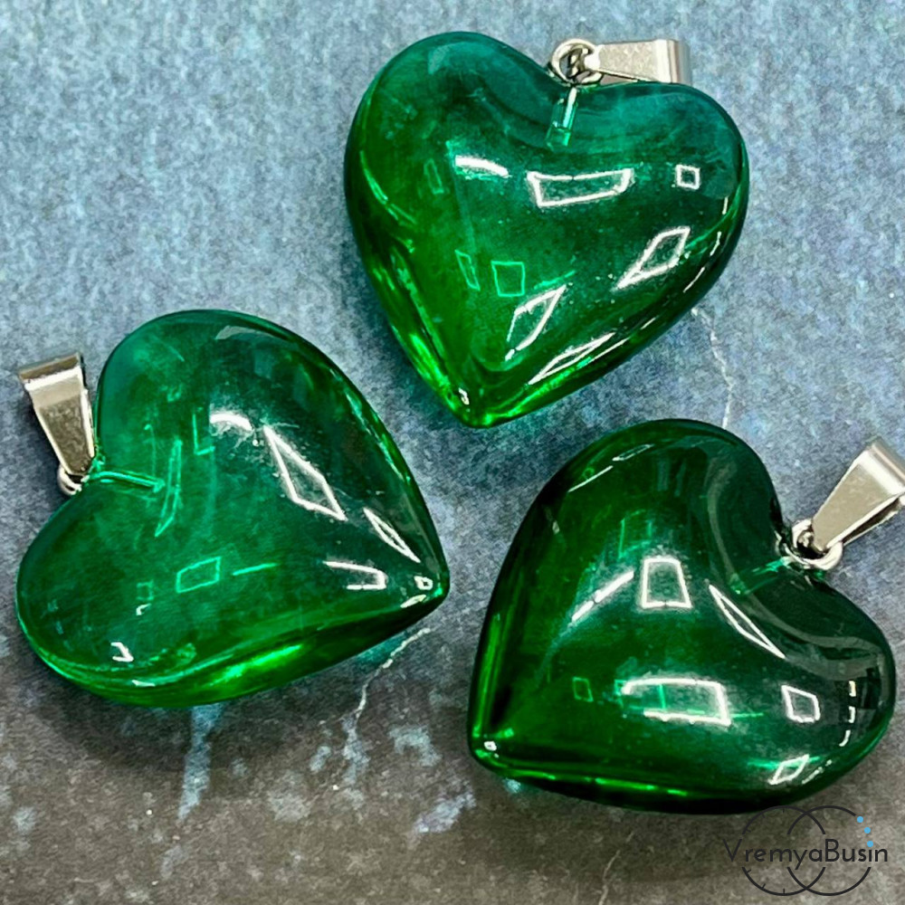 • Кулон из стекла "Сердце", 25 мм, цв. изумрудный  (1 шт.)