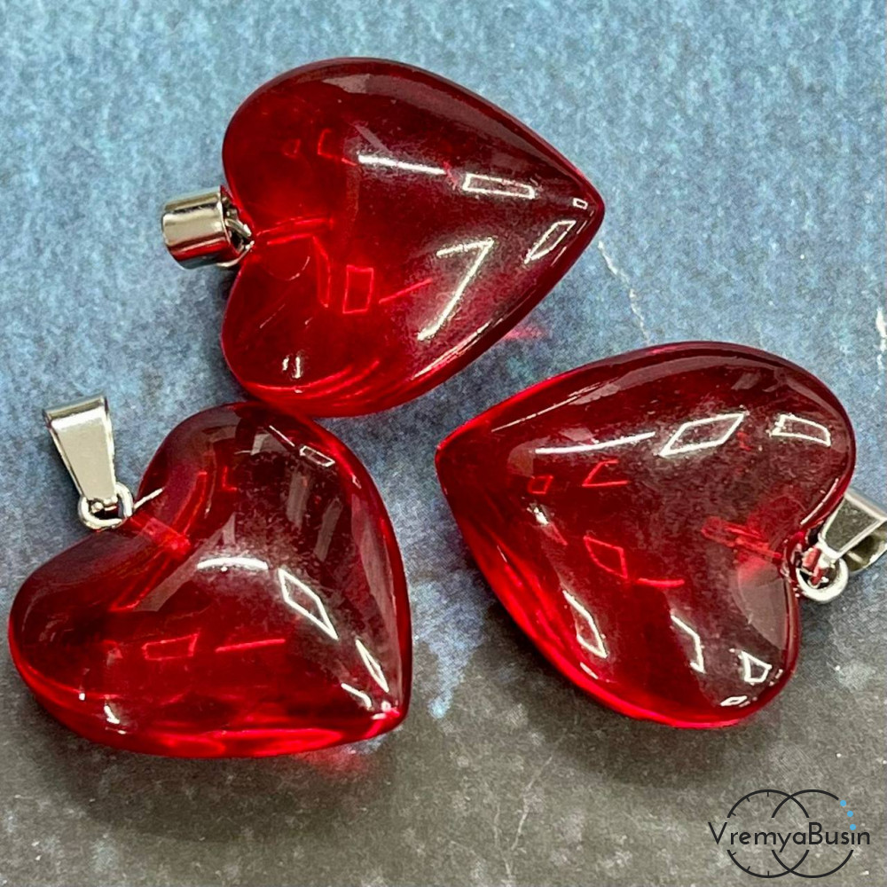 Кулон из стекла "Сердце", 25 мм, цв. красный (1 шт.)