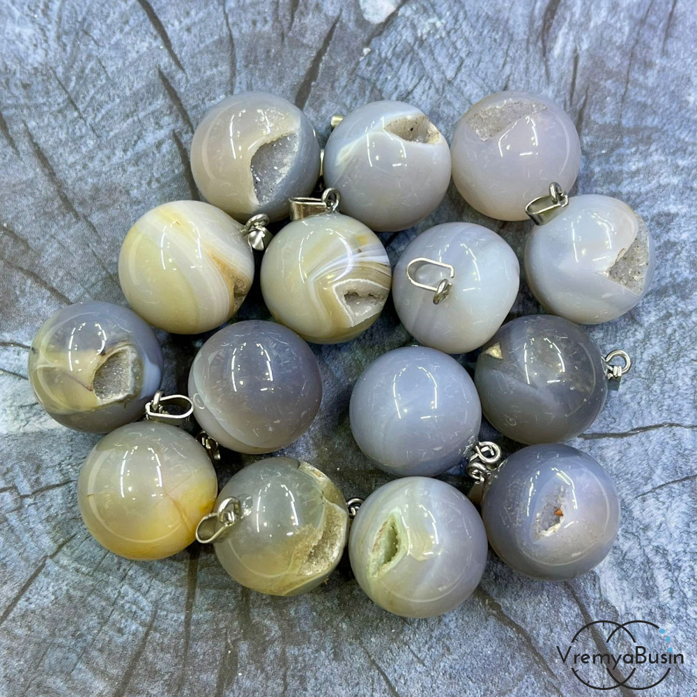 Агат с друзой, шар 20 мм, кулон из камня в асс. (1 шт.)