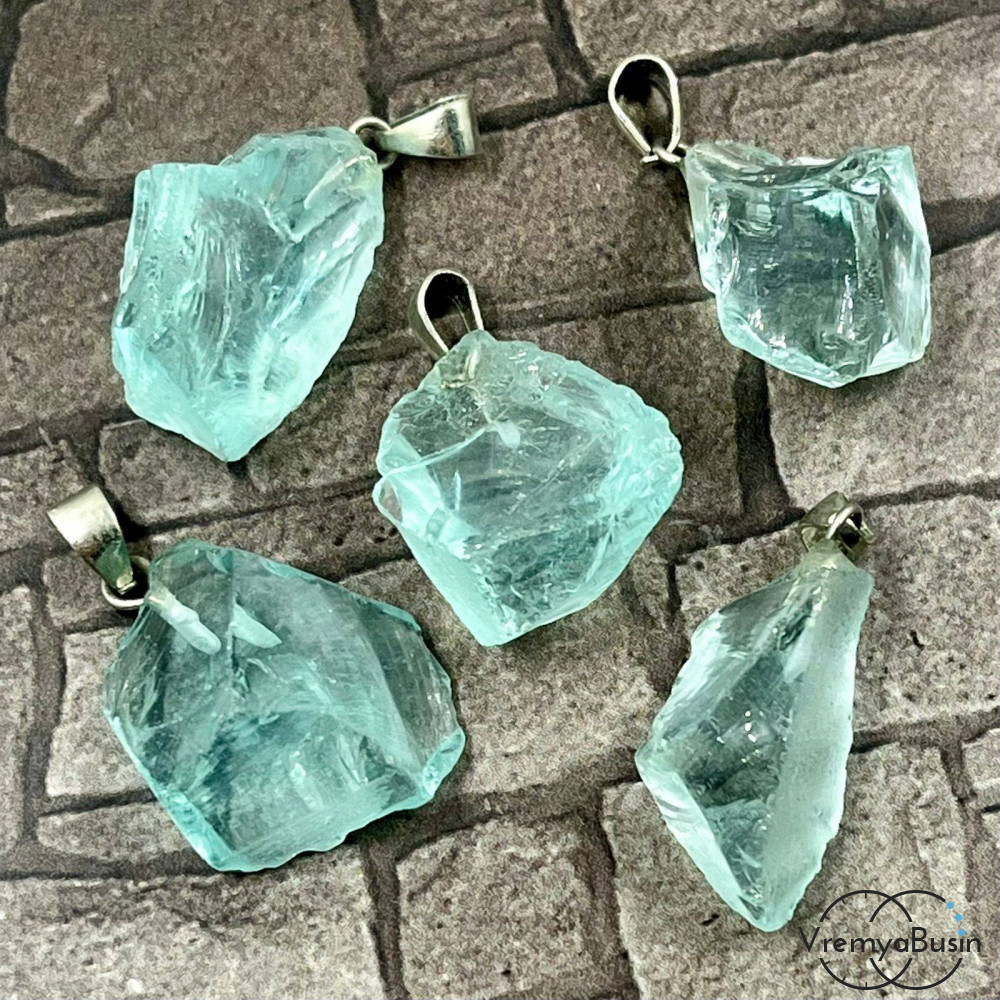 • Аква-кварц, подвеска из скола необработанного камня, ок. 15х20 мм (1 шт.)