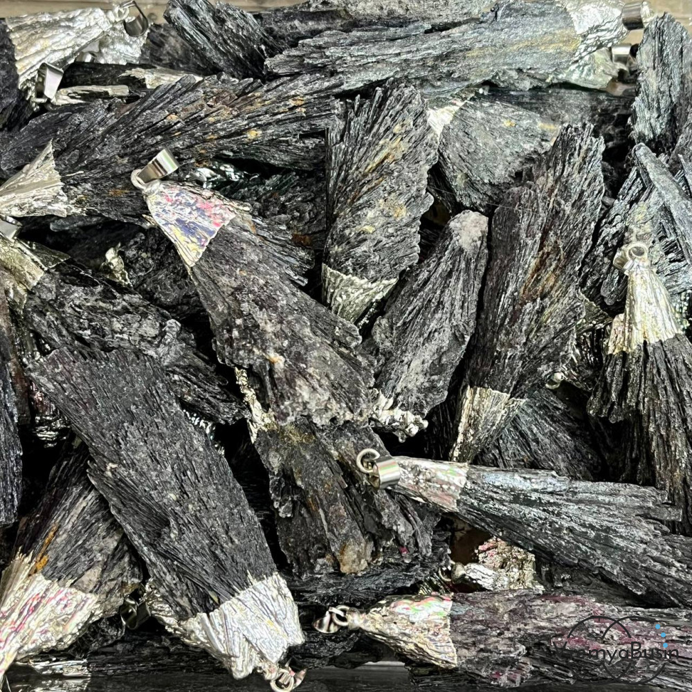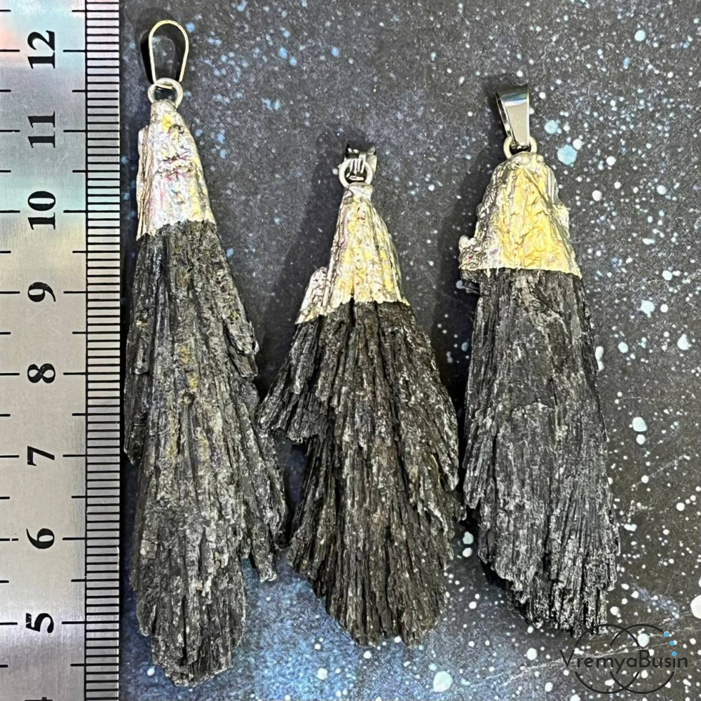 Черный кианит, подвеска кристалл в металле цв. серебро (1 шт.)