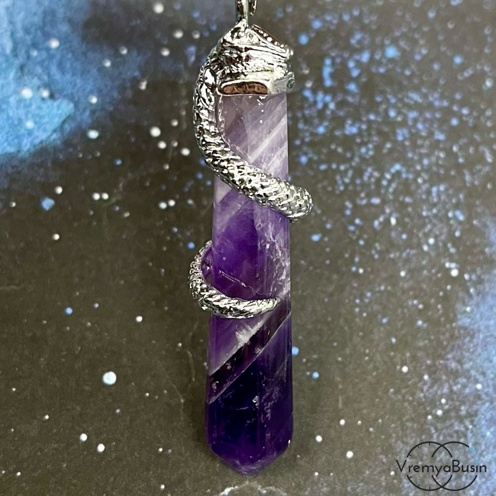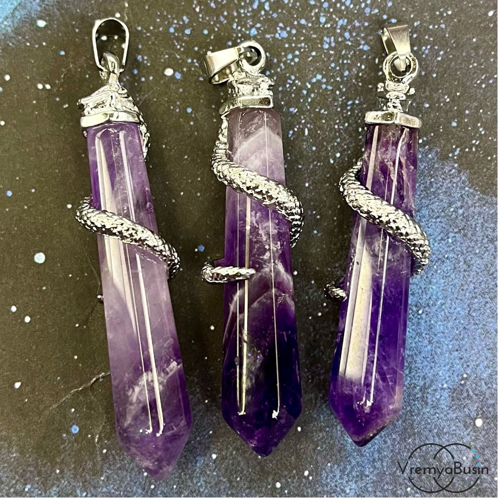 Аметист, кулон из камня "Кристалл со змеей", ок. 60х12 мм ( 1 шт.)