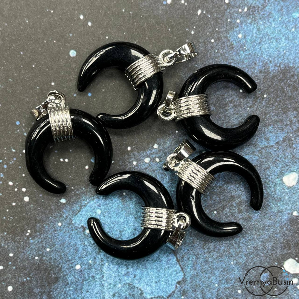 • Агат черный. Кулон из камня "Лунница", ок. 20х24х5 мм (1 шт.)