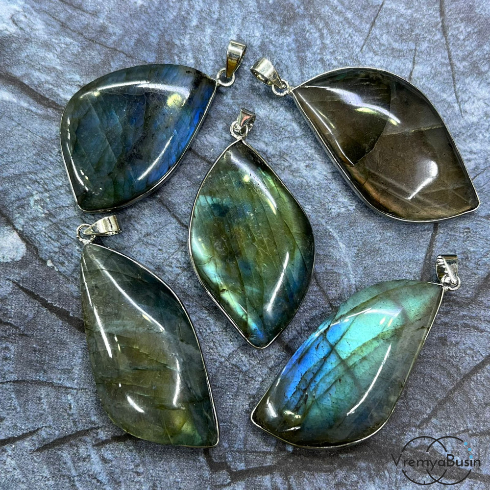 • Лабрадор, кулон плоский в металлической оправе, ок. 25х40 мм (1 шт.)