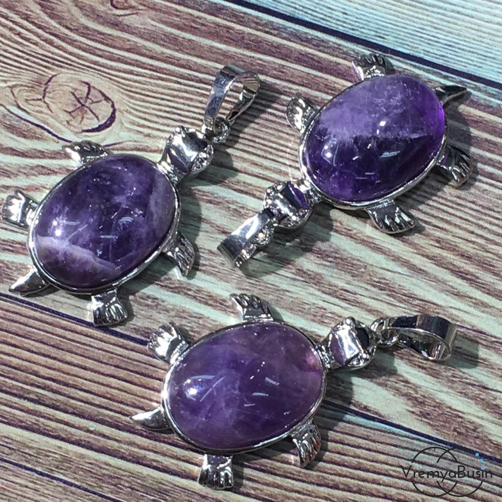 Аметист. Подвеска «Черепаха» со вставкой из камня (1 шт.)