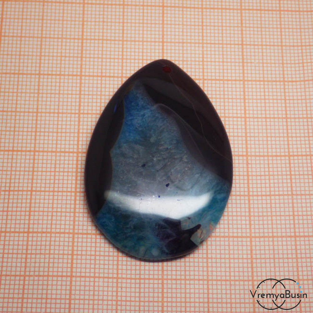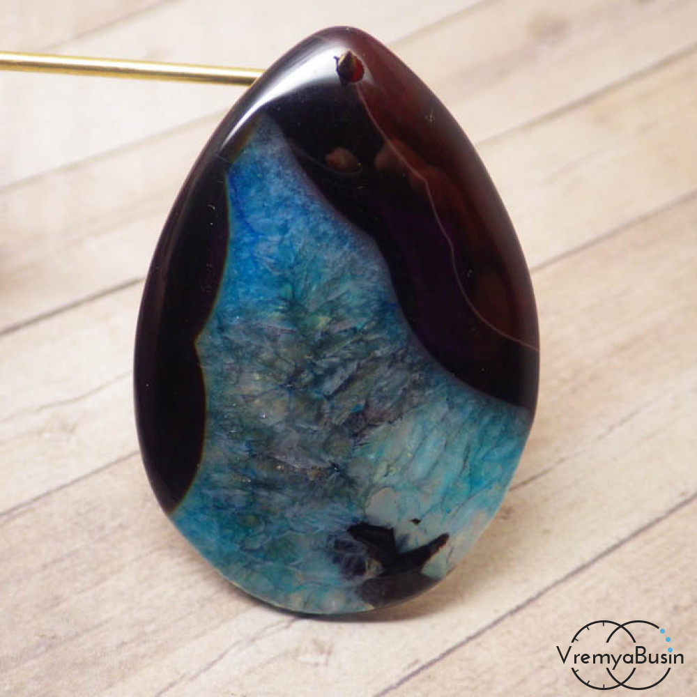 Подвеска из камня. Капля черная с бирюзовым из агата