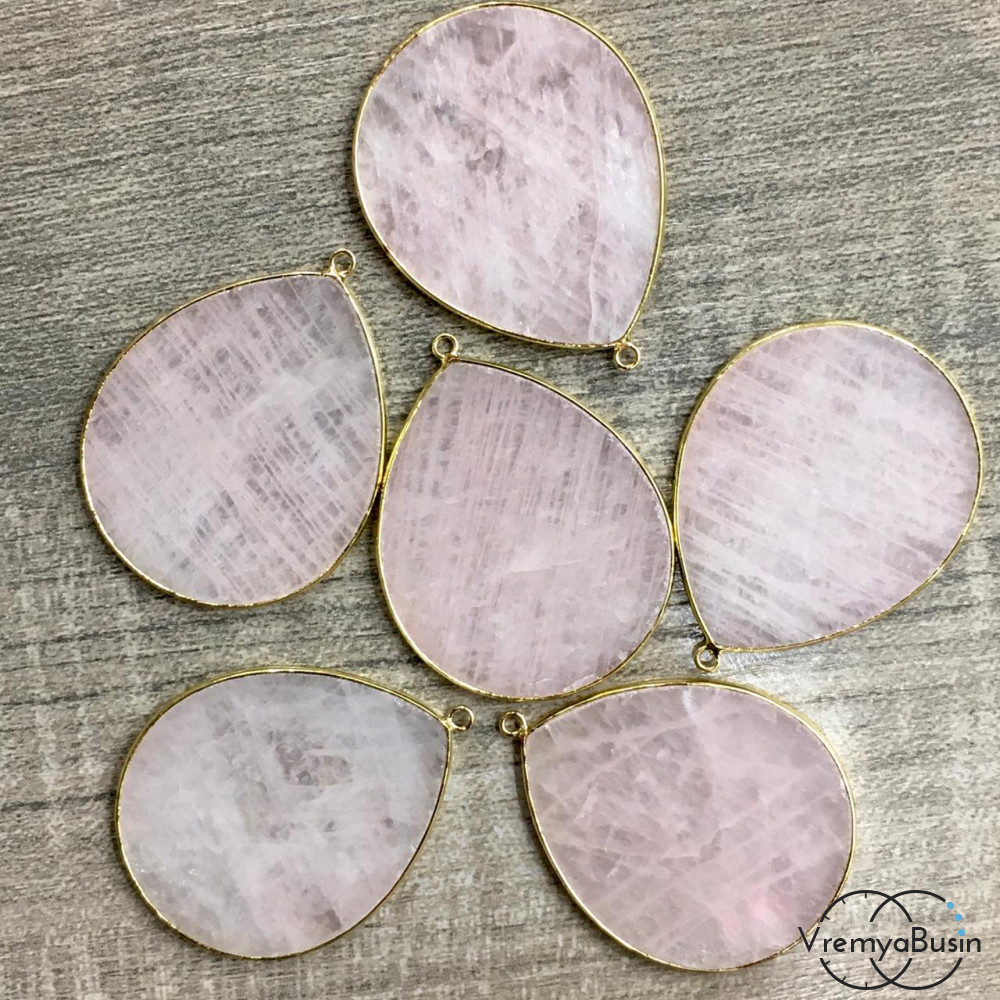 • Розовый кварц. Подвеска из камня в металл. оправе цв. золото, ок. 30х40 мм (1 шт.)