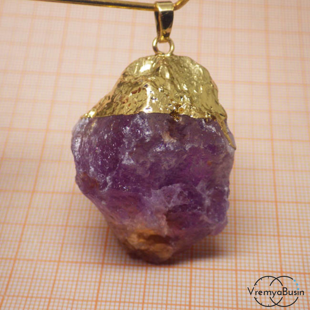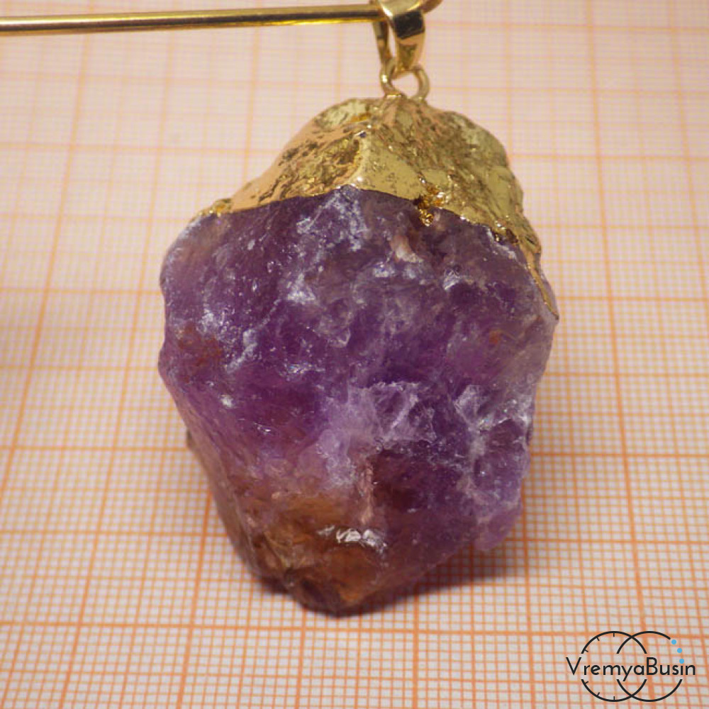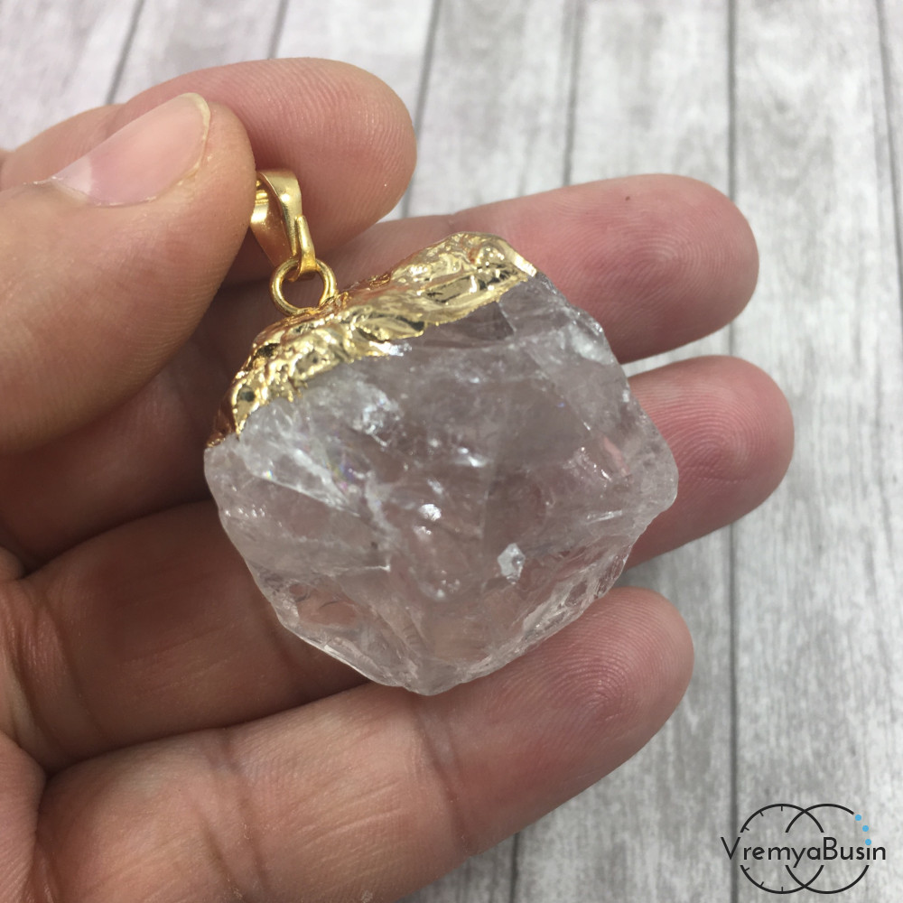 Подвеска-кулон из розового кварца в металле под золото (1 шт.)