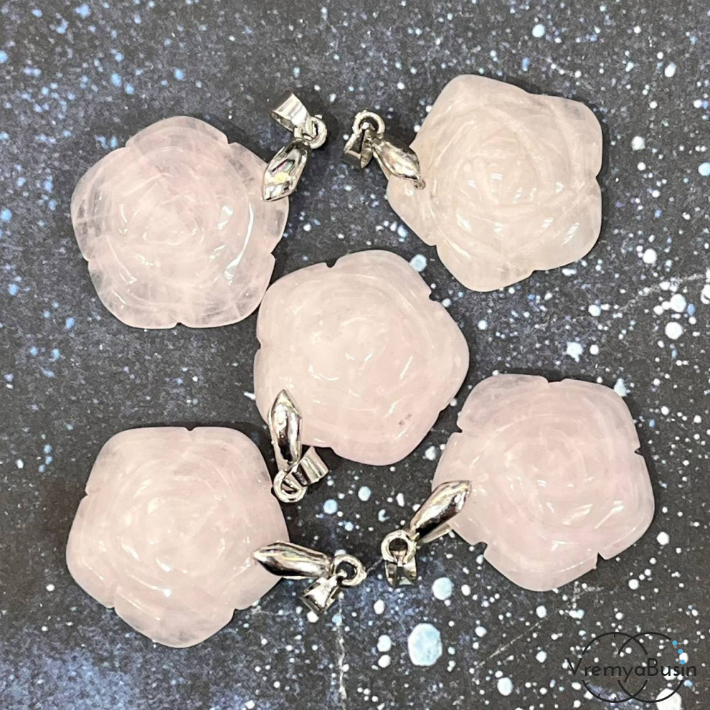 • Розовый кварц. Подвеска из резного камня "Цветок", ок. 22 мм (1 шт.)