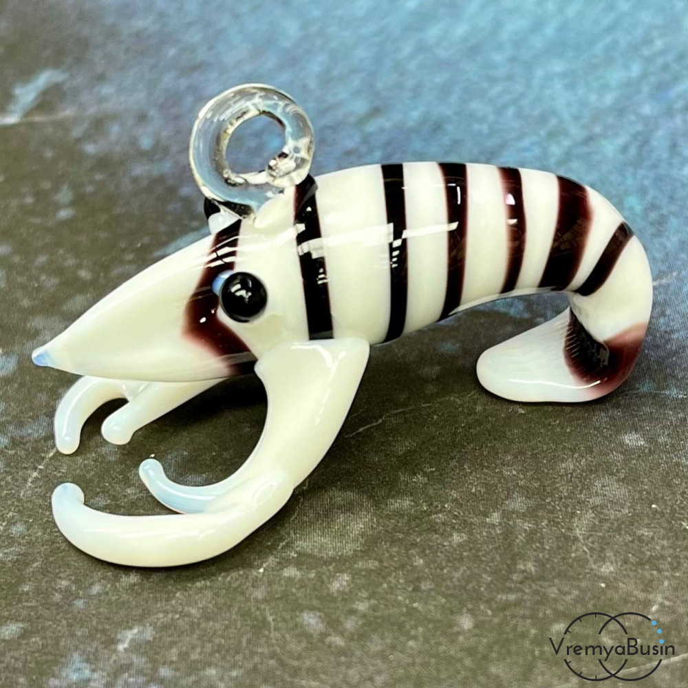 Подвеска из стекла лэмпворк "Креветка", ок. 40х25х20 мм, цв. белый (1 шт.)