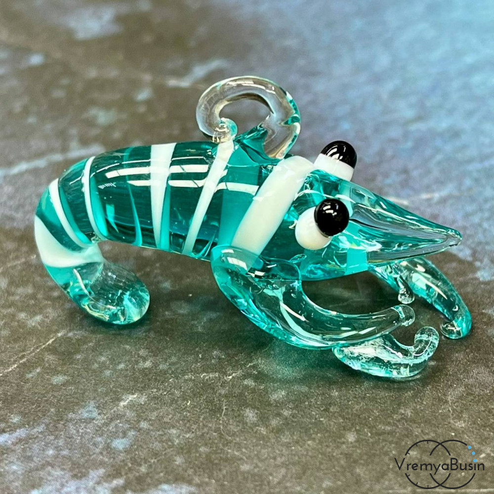 Подвеска из стекла лэмпворк "Креветка", ок. 40х25х20 мм, цв. бирюзовый (1 шт.)