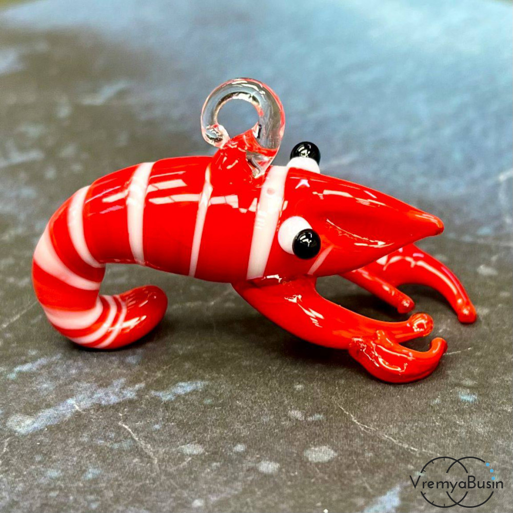 Подвеска из стекла лэмпворк "Креветка", ок. 40х25х20 мм, цв. красный (1 шт.)