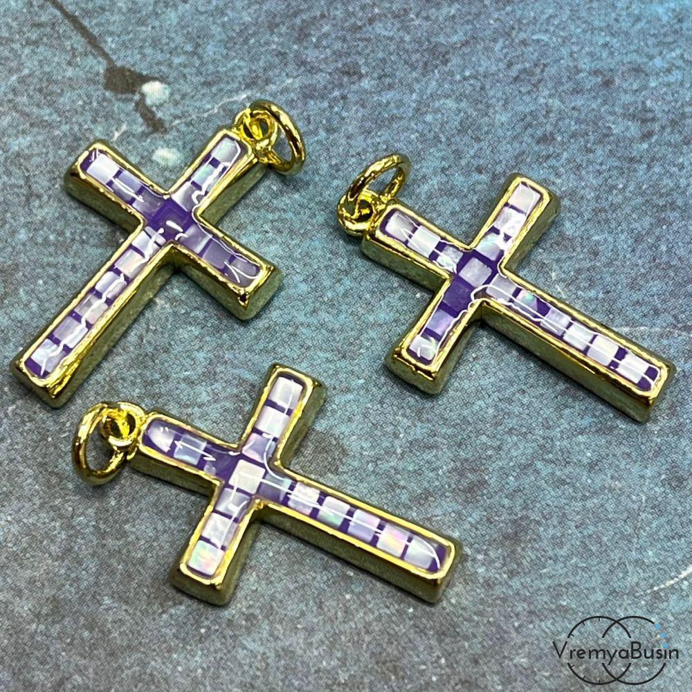 • Крест, подвеска с мозаикой из перламутра, 15х22 мм (1 шт.)