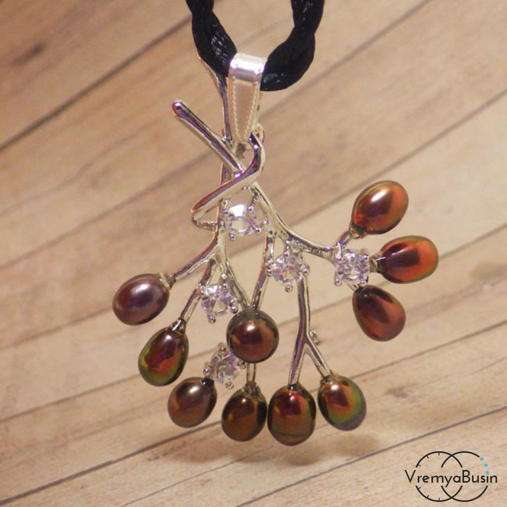 Кулон с речным жемчугом на витом черном шнурке (1 шт.)