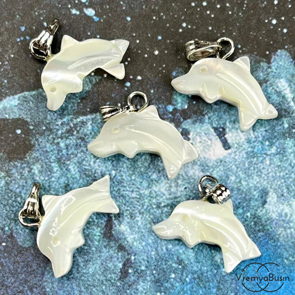 • Подвески из белого перламутра, дельфин 18х12  мм (упак. 2 шт.)