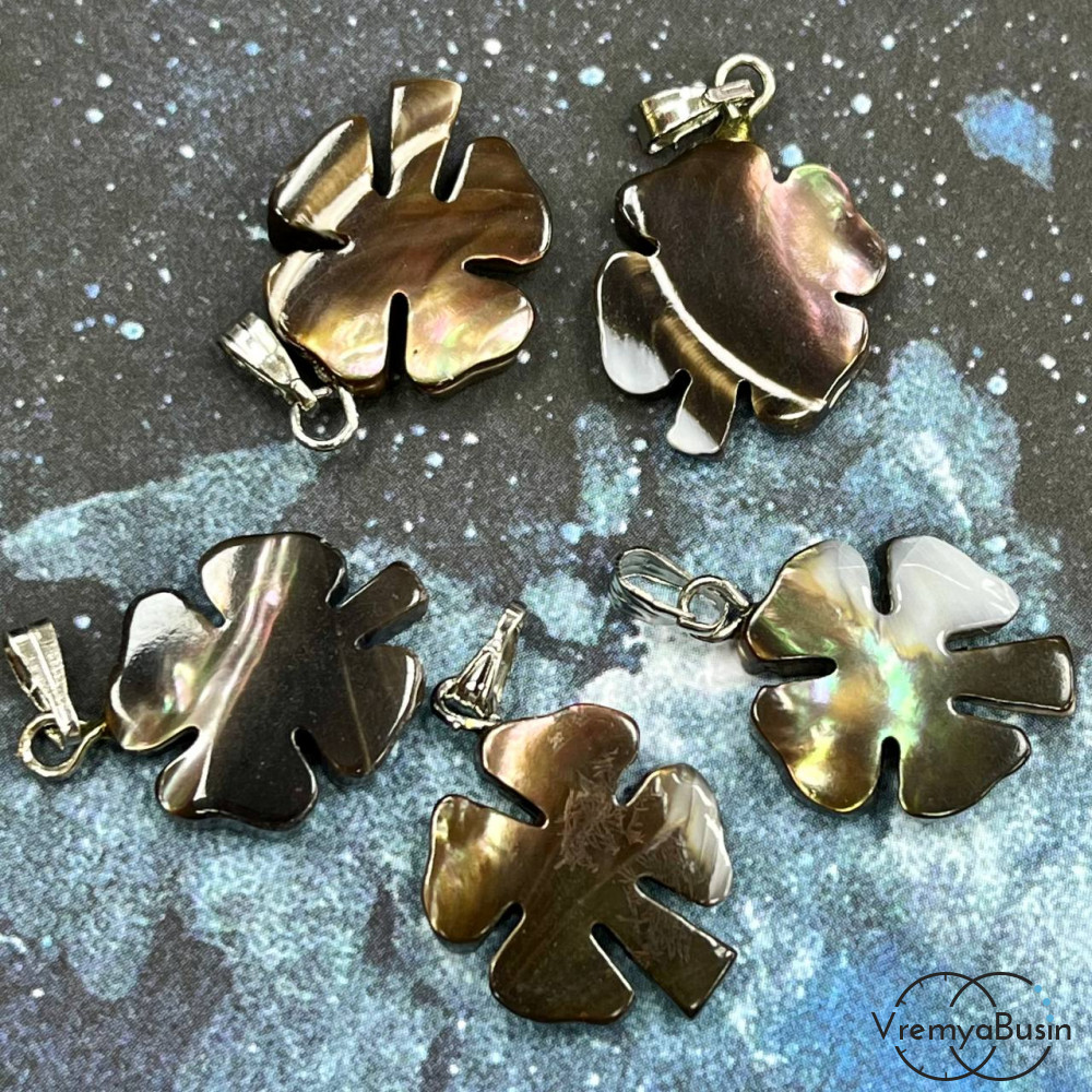 • Подвески из шоколадного перламутра, клевер 15х20 мм (упак. 2 шт.)