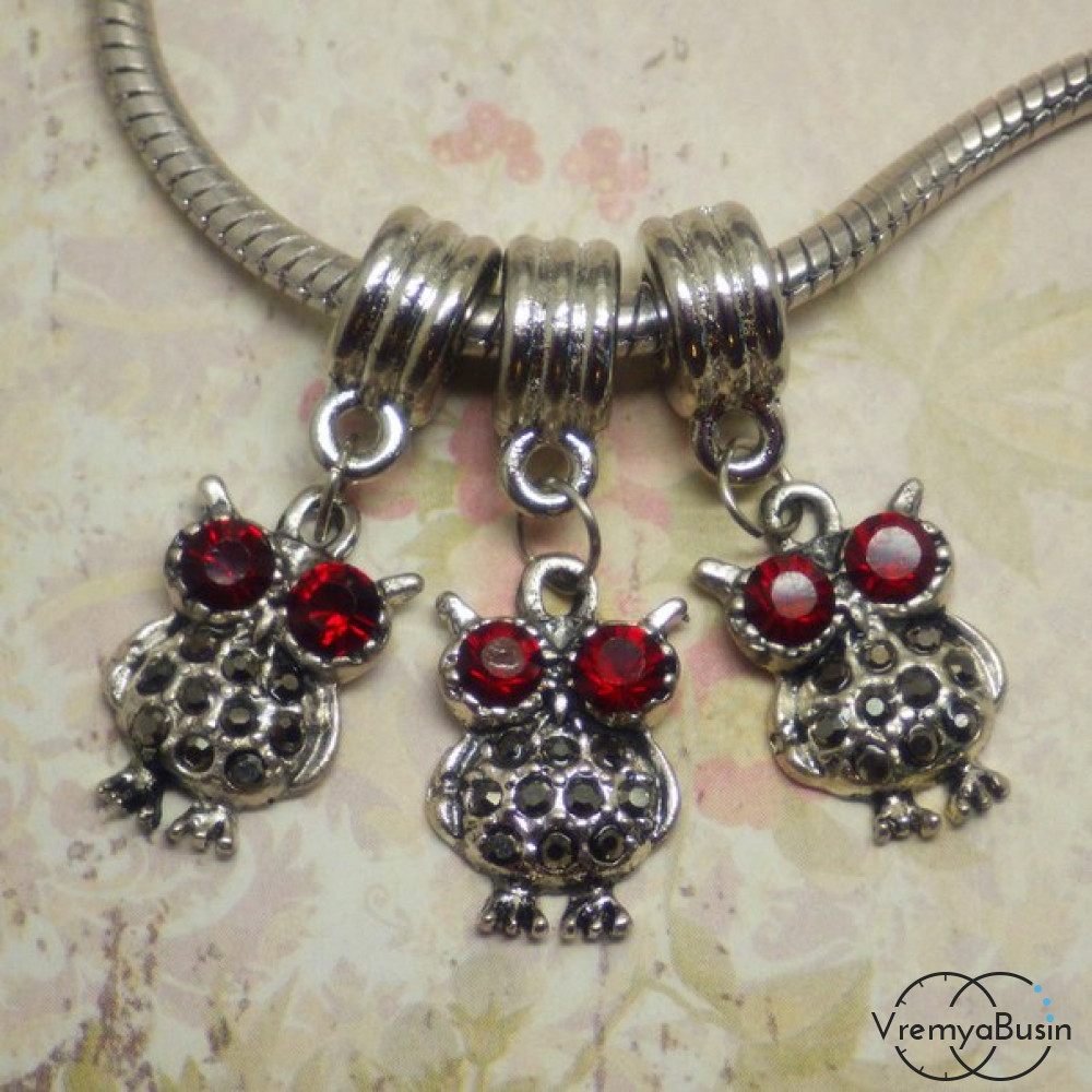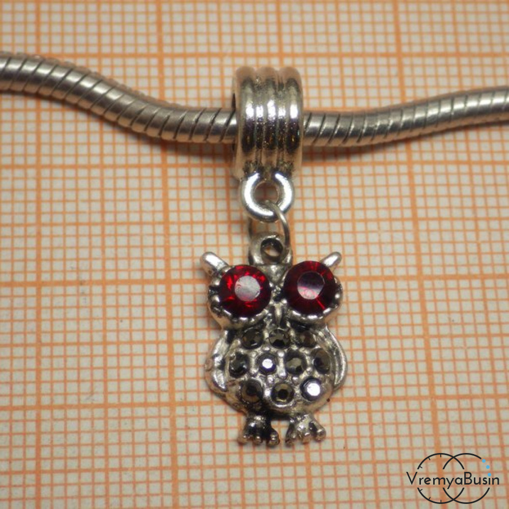 Подвеска в стиле Пандора. Сова с горящими глазами