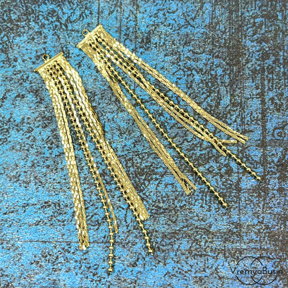 • Подвеска с цепочками, 70х10 мм, латунь с позолотой и фианитами (1 шт.)