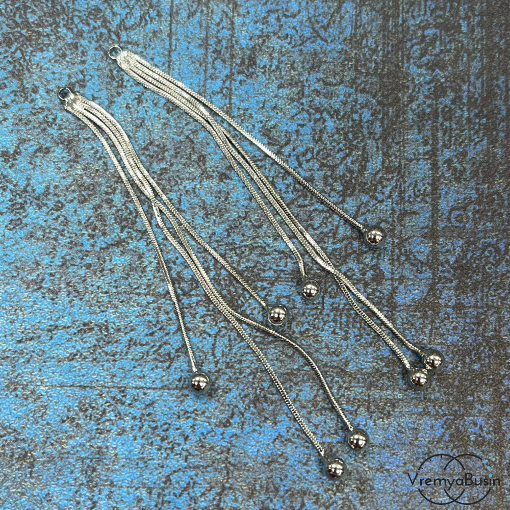 • Подвеска с цепочками, 80х5 мм, латунь с родиевым покрытием и фианитами (1 шт.)