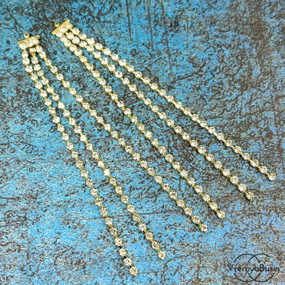 Подвеска с цепочками, 85х8 мм, латунь с позолотой и фианитами (1 шт.)