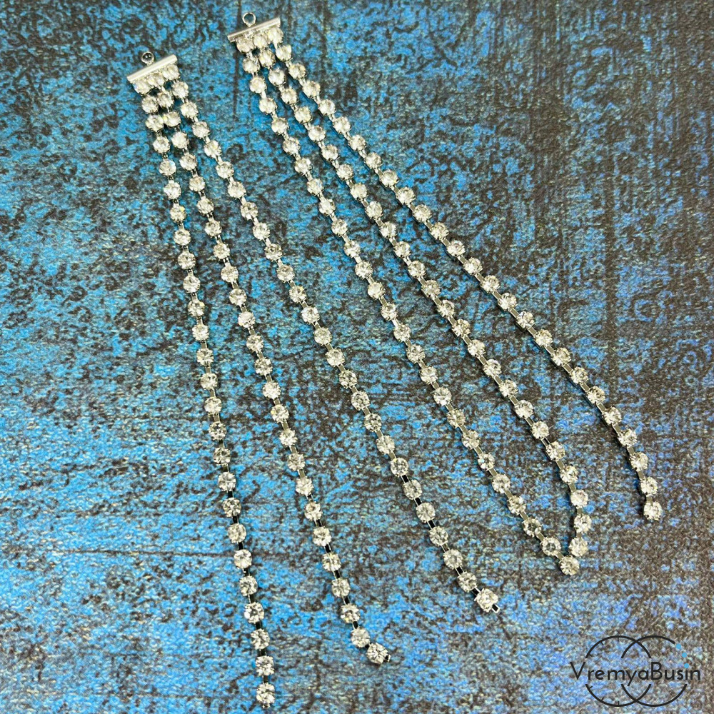 • Подвеска с цепочками, 85х8 мм, латунь с родиевым покрытием и фианитами (1 шт.)