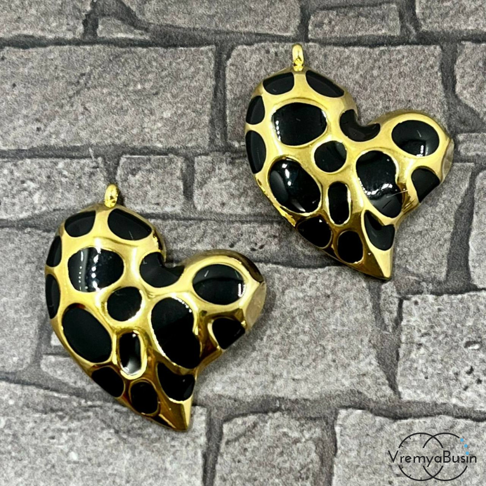 Сердце, 24х29 мм, подвеска из нержавеющей стали с эмалью и позолотой (1 шт.)